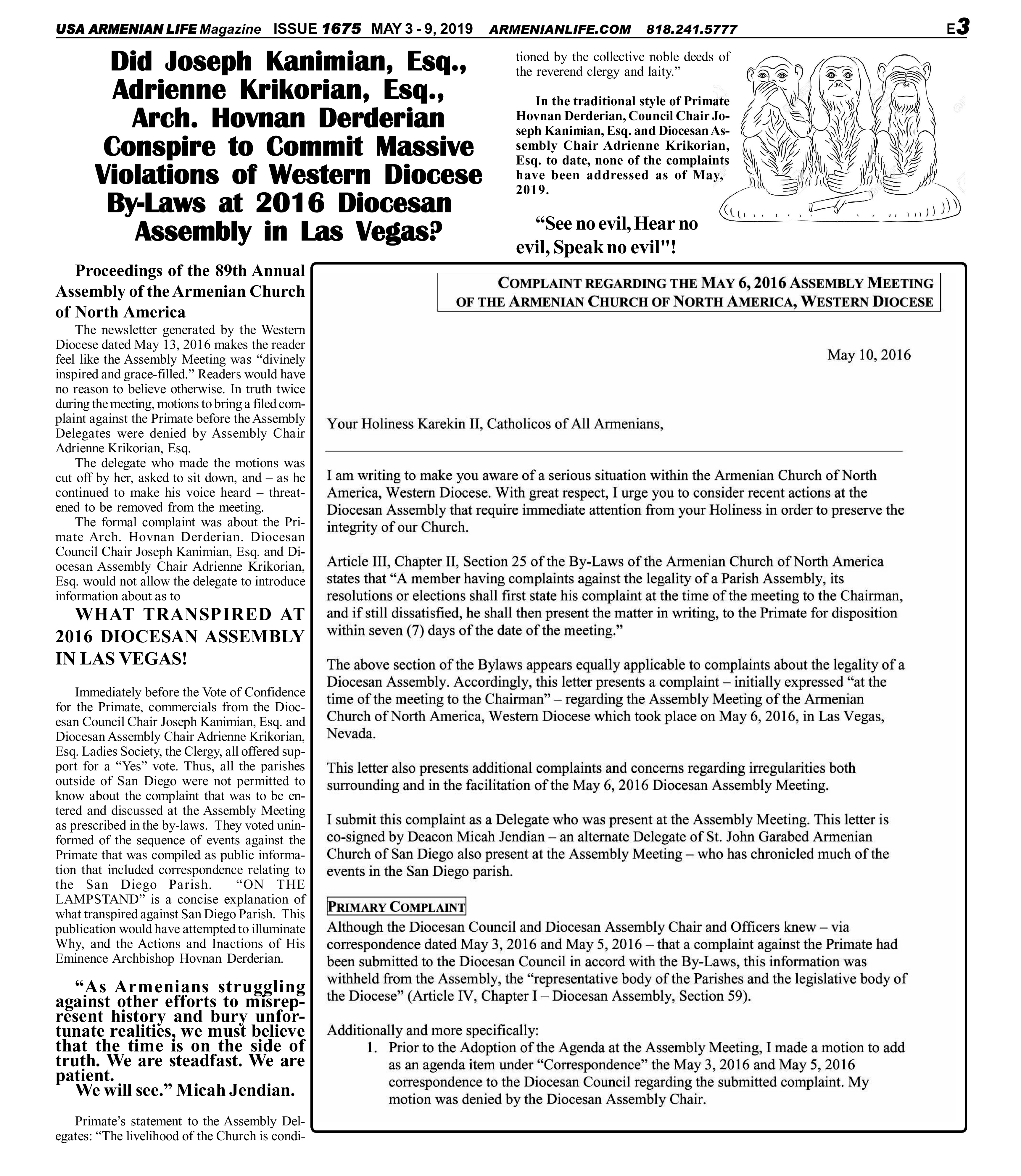 Re: May 2016 Diocesan Assembly in Las Vegas; By-Laws Violations; […]